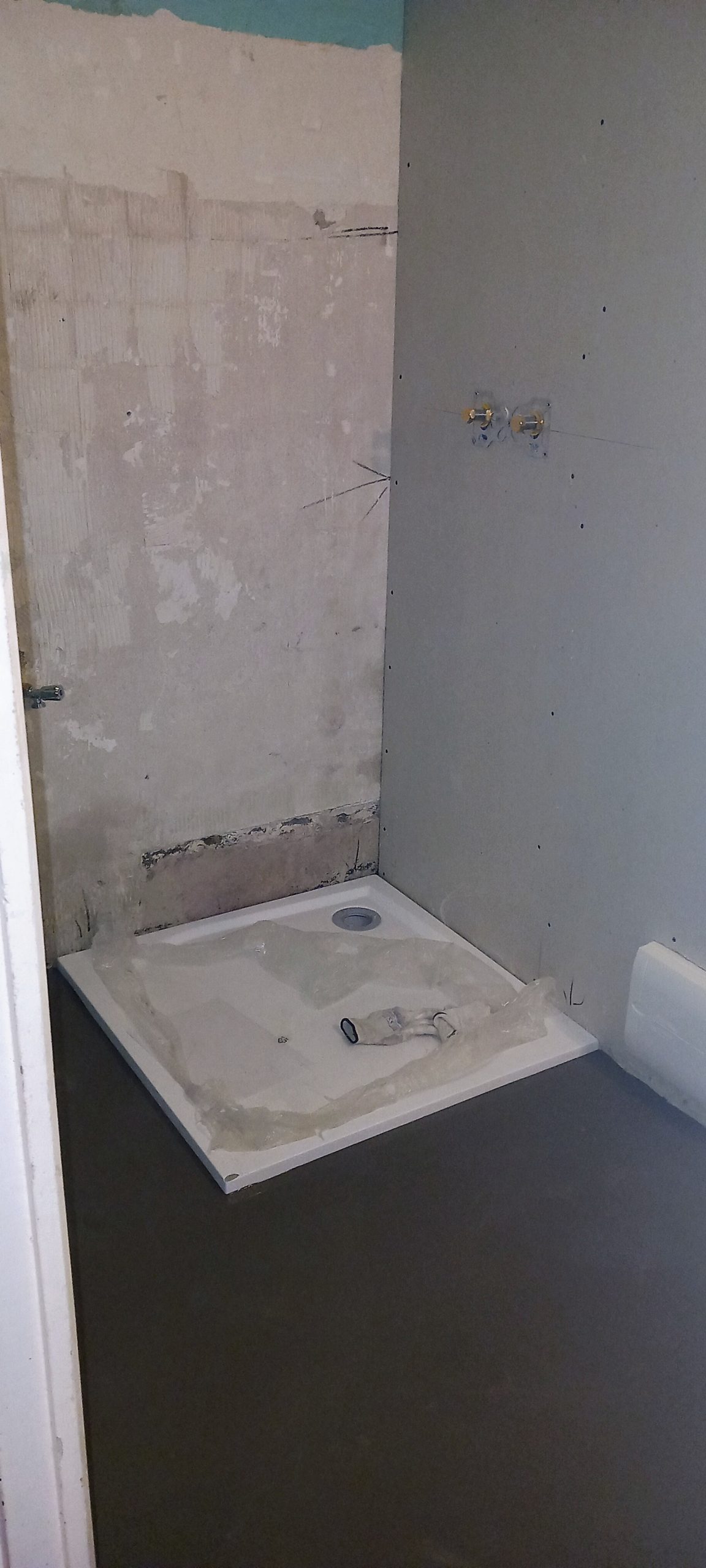 • Accueil » réalisations » rénovation d’une salle de bain (remplacement de la douche, refaire les évacuations d’eau et les arrivées, placo carrelage)